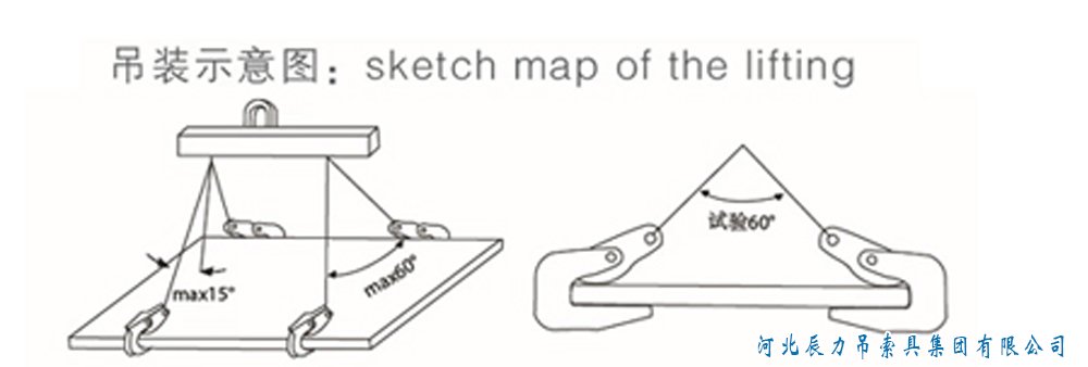 1.橫吊起重鉗的基本用法如圖所示,通過(guò)橫梁連接,組成兩對(duì)橫吊起重鉗。特別提示:橫吊起重鉗的安全工作載荷是指一對(duì)(兩只)橫吊鉗的載荷;起吊鋼板厚度是指吊鉗安全起吊鋼板的厚度范圍,起重吊鉗的實(shí)際開口度應(yīng)該大于鋼板的厚度。起吊前必須檢查鋼板的重量和板厚是否與起重鉗匹配。